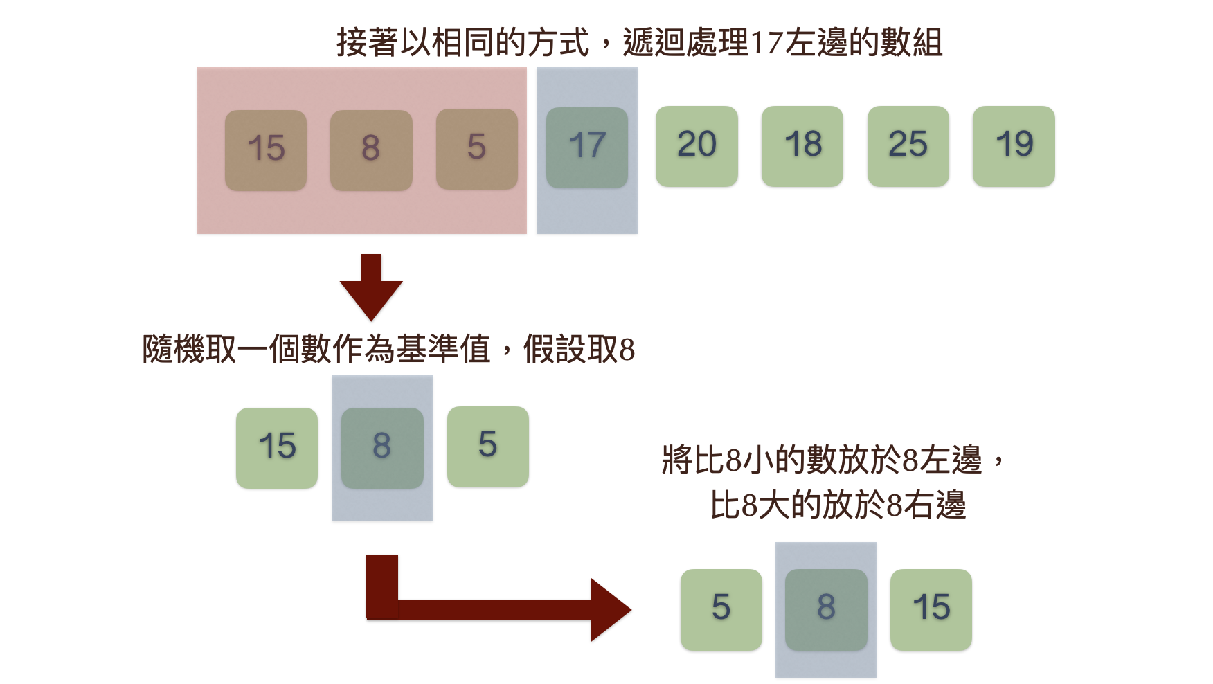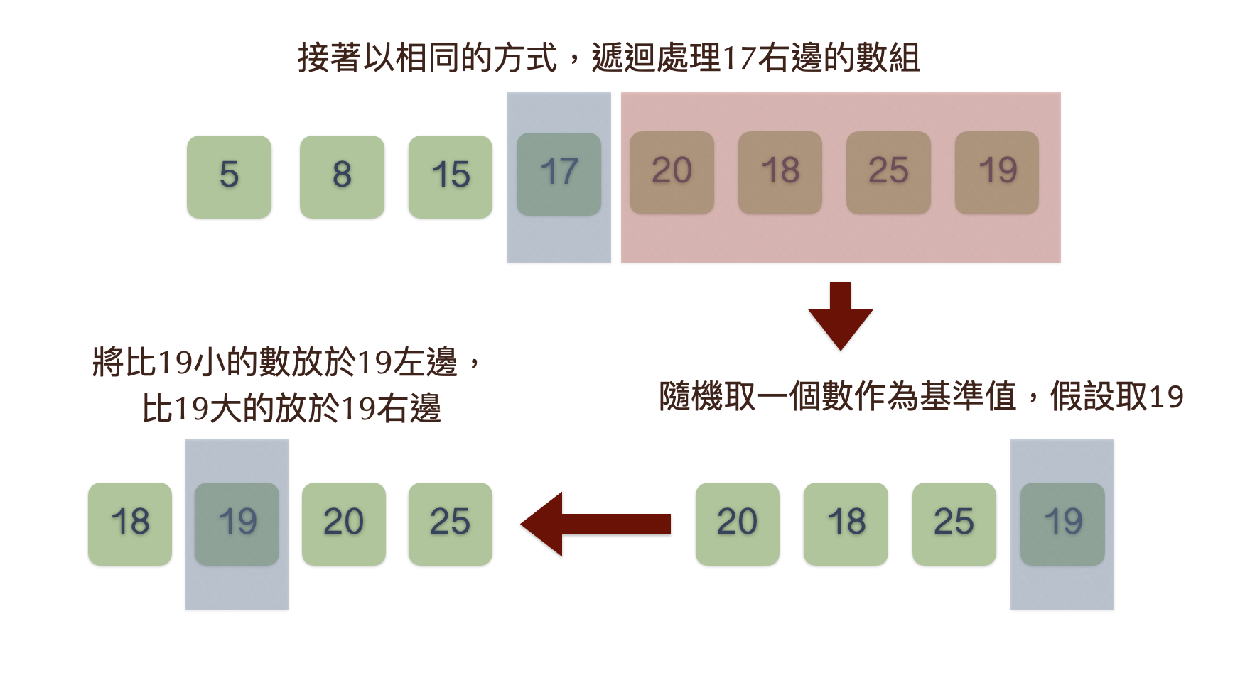 :遞迴對基準值左邊/右邊的數組執行Step1&Step2