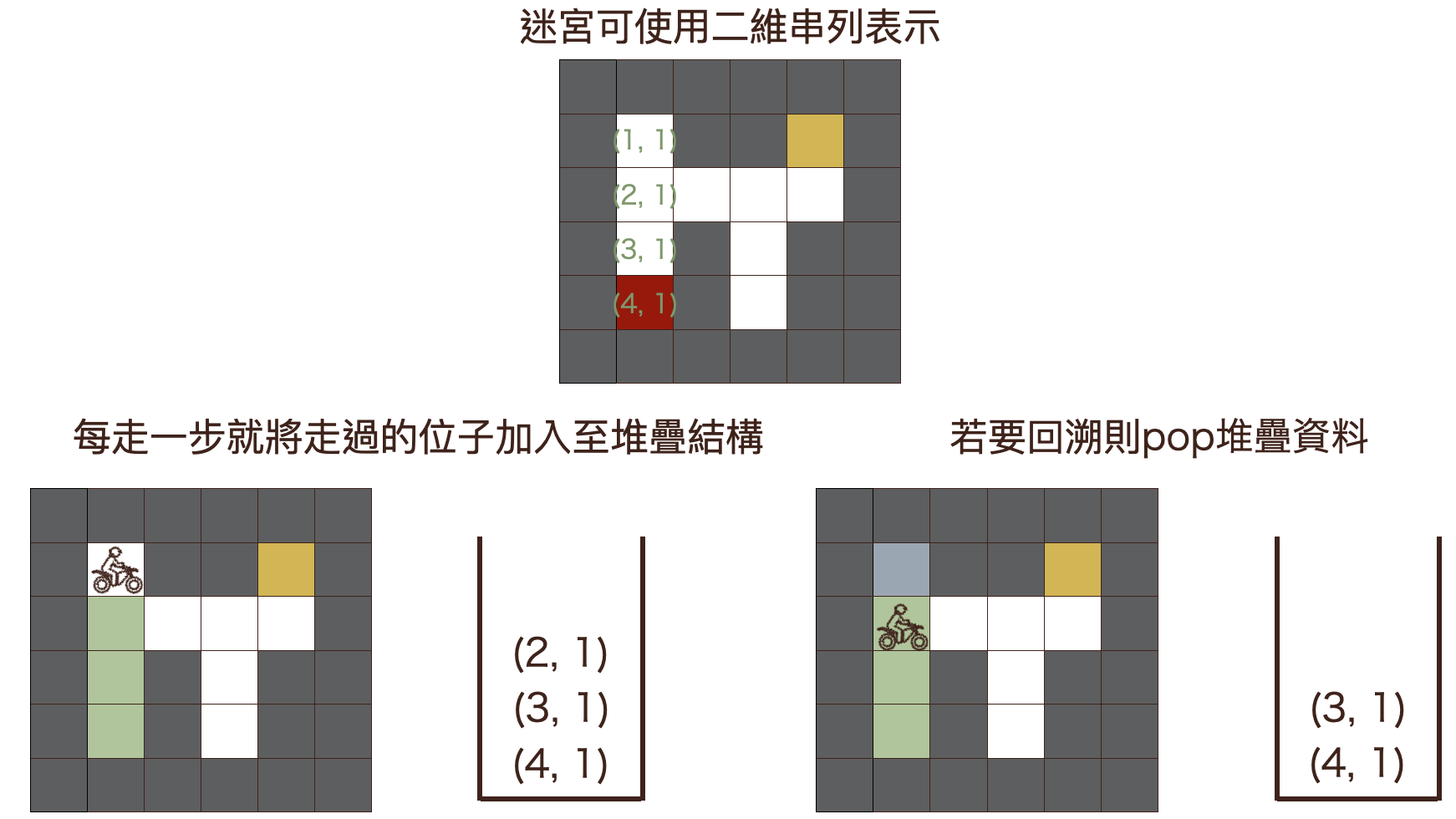 的方法. - 其實作部分與堆疊有關, 我們將以走迷宮來介紹其演算法