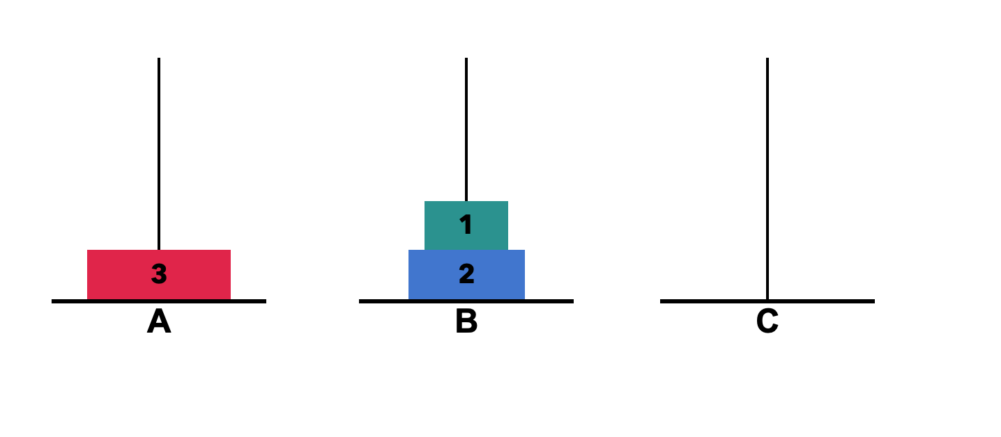 個. 完成河內塔問題的最佳移動次數為$2^n-1$.
